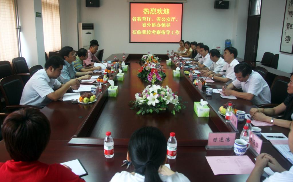 播中国文化,营造多元文化校园环境具有重要意义。9月15日上午,省教育厅汉语推广办公室徐恒振主任、公安厅出入境管理局王占清科长、外侨办涉外新闻处刘鹏科长、教育厅科研外事处马强和科长一行四人莅临我校考察指导我校申请招收外国来华留学生工作。在行政楼第一会议室,院长陈建国、副院长晁召行,院长办公室、教务处、国际交流与合作处及相关院系的领导和老师参加了汇报会。汇报会由院长助理、科研处处长杨风岭教授主持。