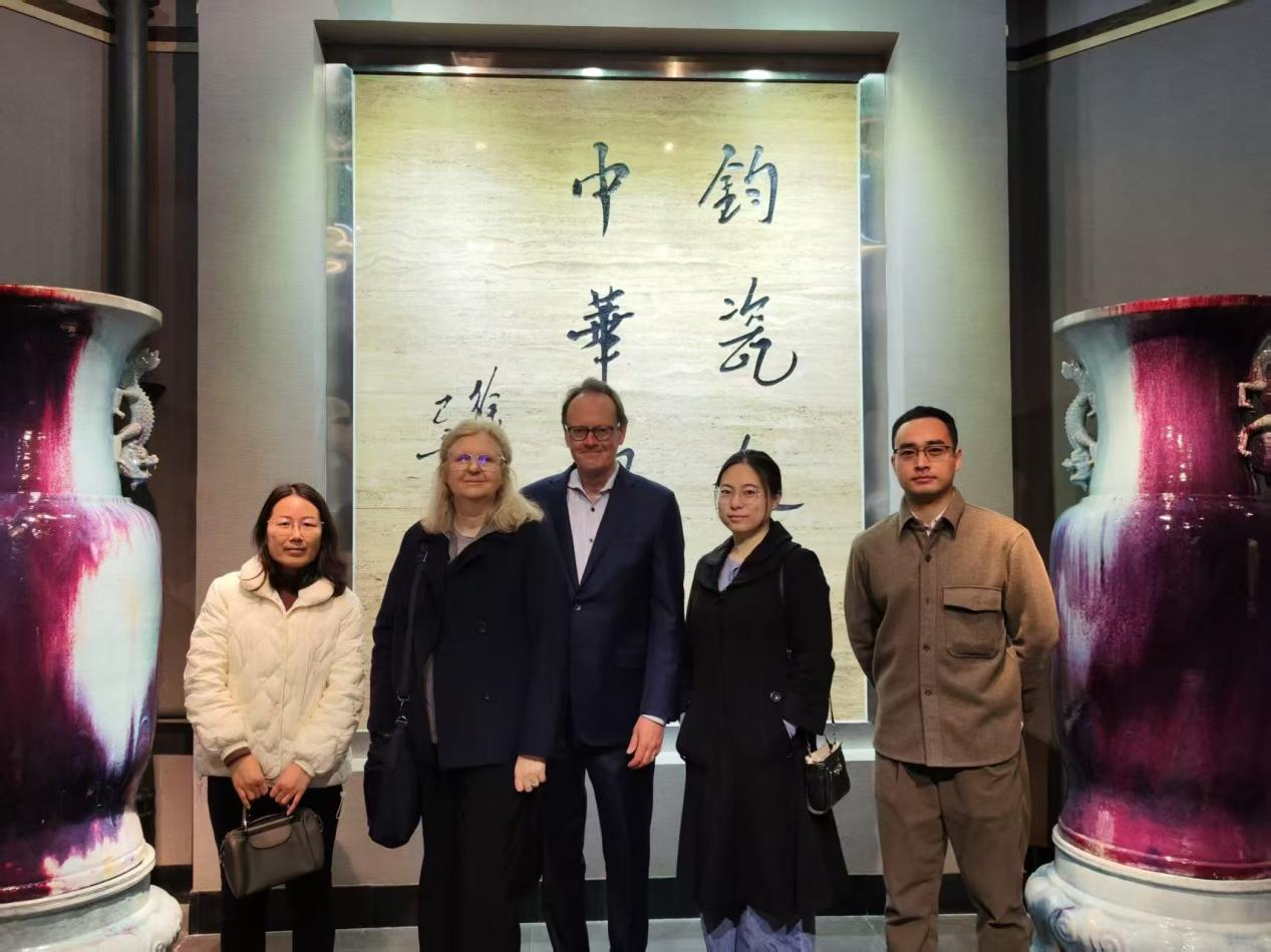 期间,Paul Milan一行与国际教育学院和美术与设计学院师生进行了沟通与交流,并实地考察了我校钧瓷博物馆。(图片由国际教育学院提供)